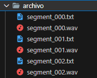 In this example, segment_000.txt contains the caption "jazz music, jobim" for wav file segment_000.wav