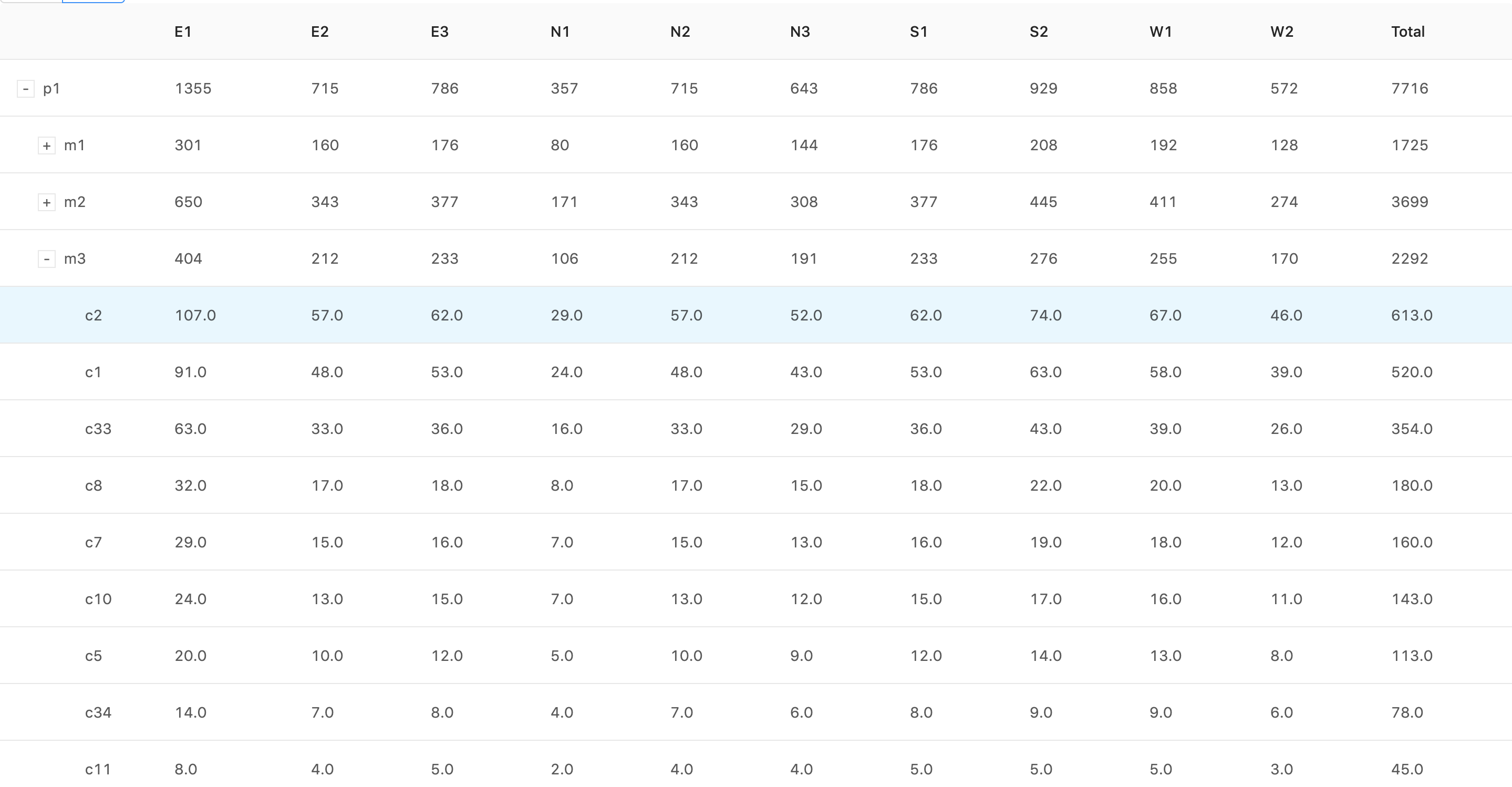 表中有所得数据均来自于一种typeClass,其下有 m1 m2 m3 三种model;而三个model 下又有 c1 - c10 不等的 color。就构成了如下的表格。