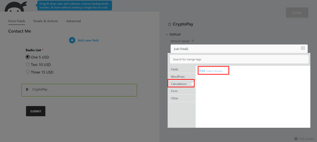 Once everything is in place, go to the payment settings within Ninja Forms and activate CryptoPay as your payment method. After that, you can start accepting cryptocurrency payments directly through your forms—effortlessly and securely, as shown in the screenshots below.