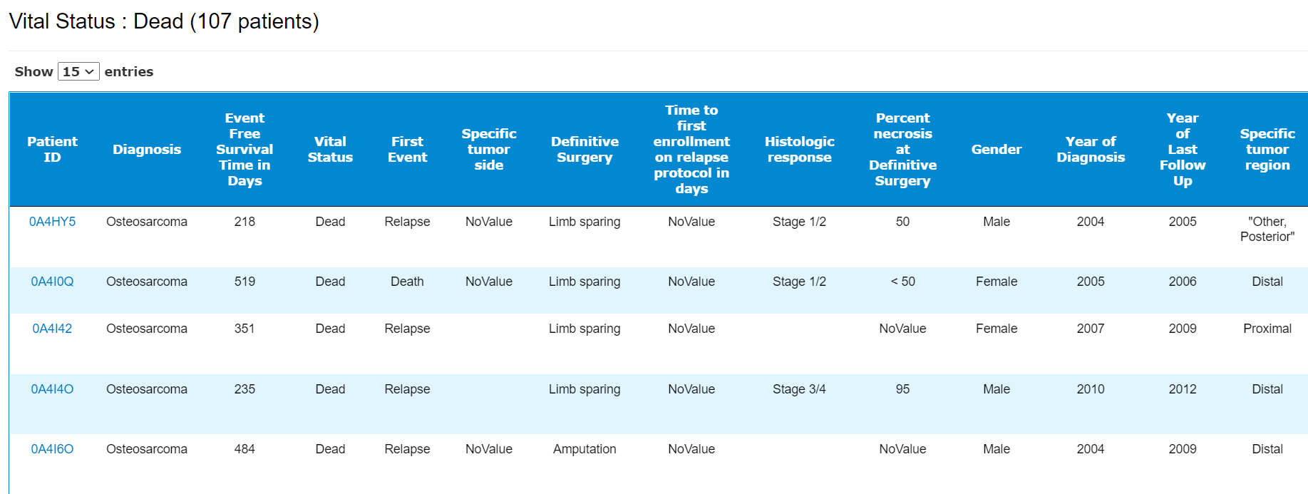 A patient table including all the meta data. By clicking , the sample list will be displayed.