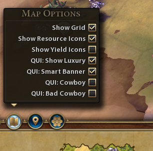 - "Smart Banner" Toggleable option to display a green icon indicating non-locked citizens, district icons indicating built districts, and lettered icons representing unbuilt buildings