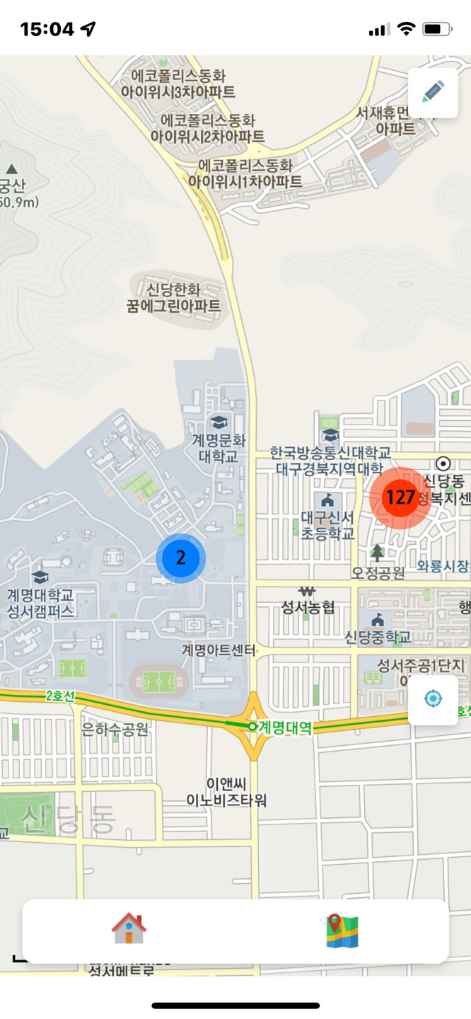 마지막 단계의 확대 레벨입니다. 여기부터는 클릭 시 해당 구 이하 단위 내에 올라온 글을 게시판 형식으로 불러옵니다.