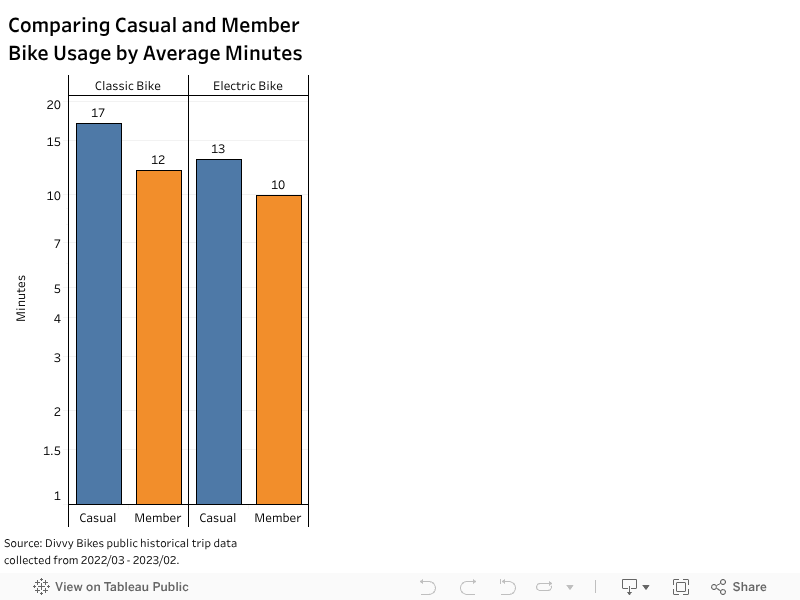 - Classic bikes have a higher average use time than electric bikes for casual riders. Cyclistic could advertise a discounted rate for annual members who ride classic bikes.
