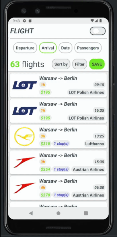 - Browse your saved flights