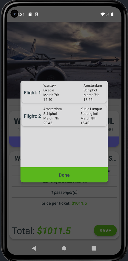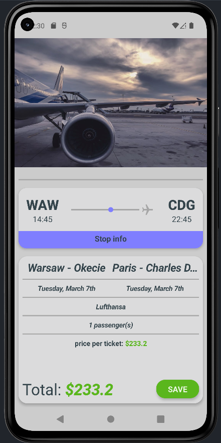 Flight tracker & booking app using API wtih realtime itineraries. The user is able to browse flights listed by given criteria: departure location, arrival location, departure time and amount of passengers and "book" them - (save to a database).