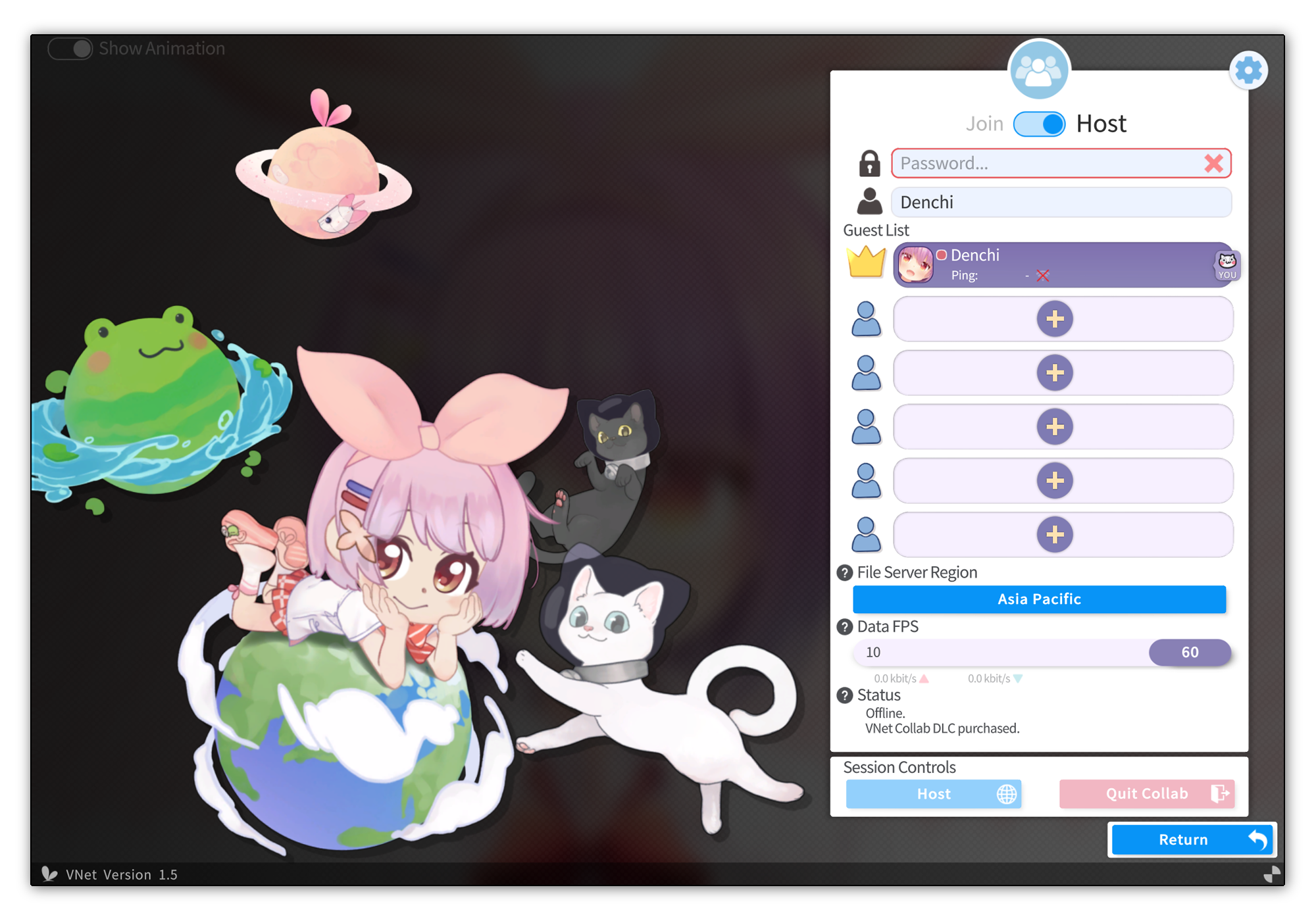 VNet is VTube Studio's built-in online collaboration system, available as paid DLC for Windows and macOS.