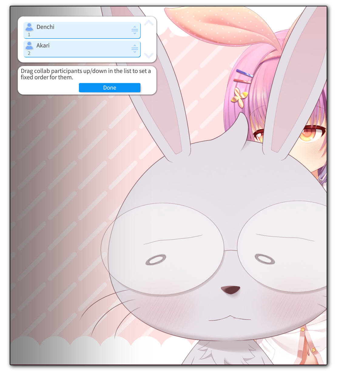 - [1]: Switch the model position control mode per participant (make other participants into Live2D items, explained below).