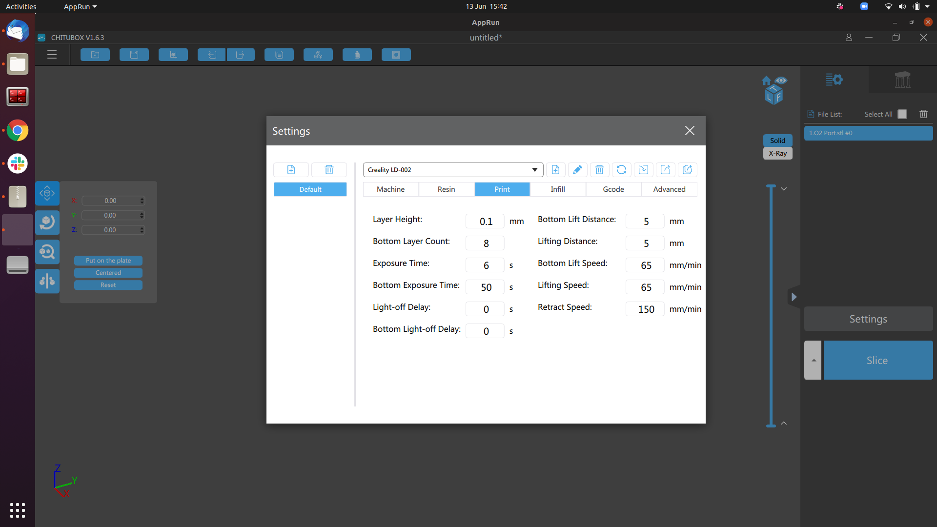 First off load up ChitBox and then load in your STL file of choice (this is is a standard 3D modelling object format)