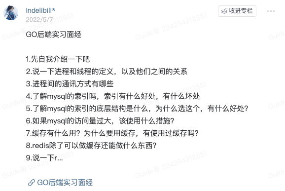 并且,知识星球还有专门分享面经和面试题的专题,里面会分享很多优质的面经和面试题。