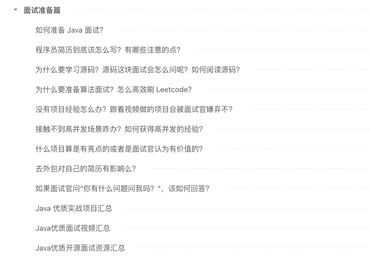 在 「面试准备篇」 ,我写了 10+ 篇文章手把手教你如何准备面试,涵盖项目经验、简历编写、源码学习、算法准备、面试资源等内容。