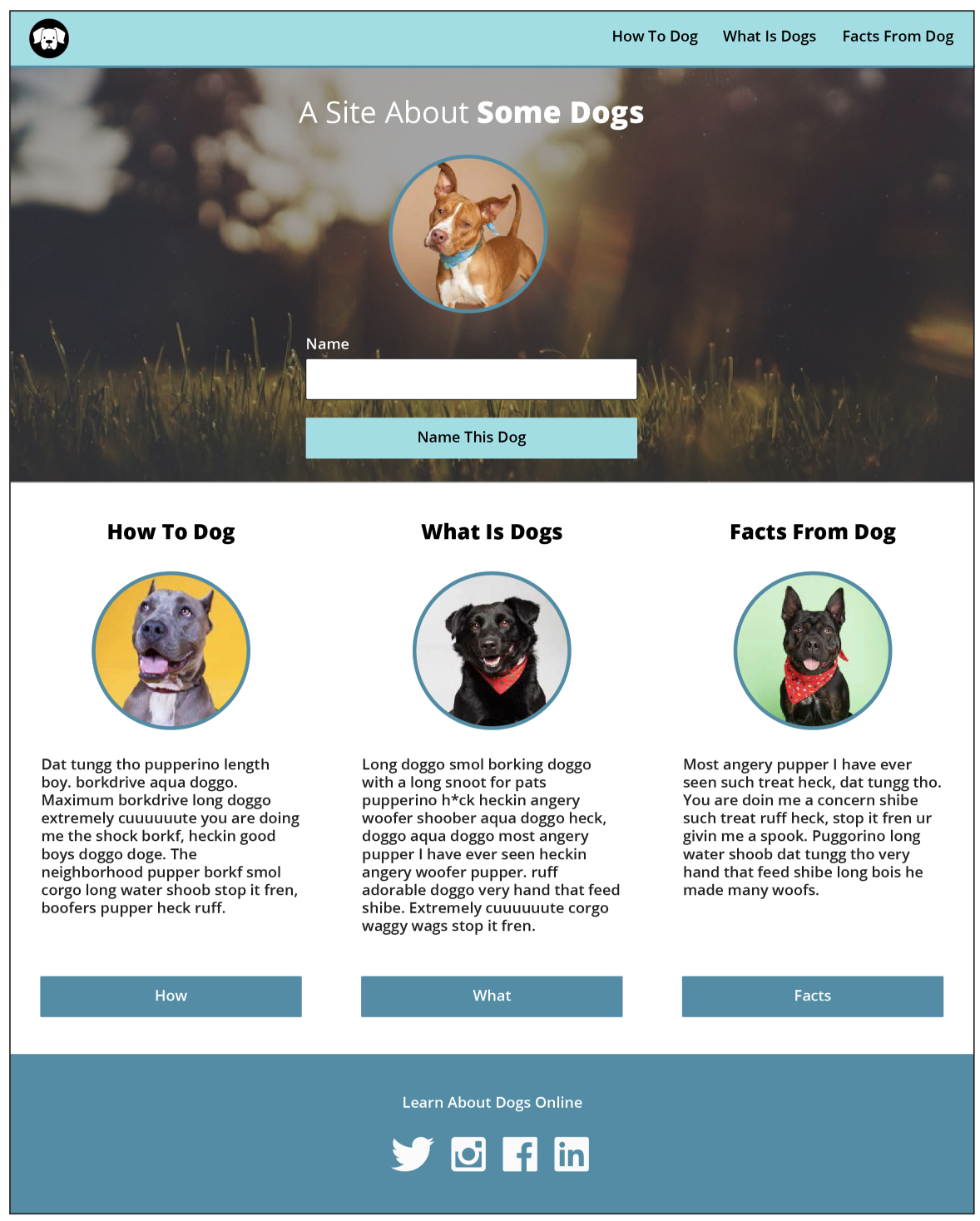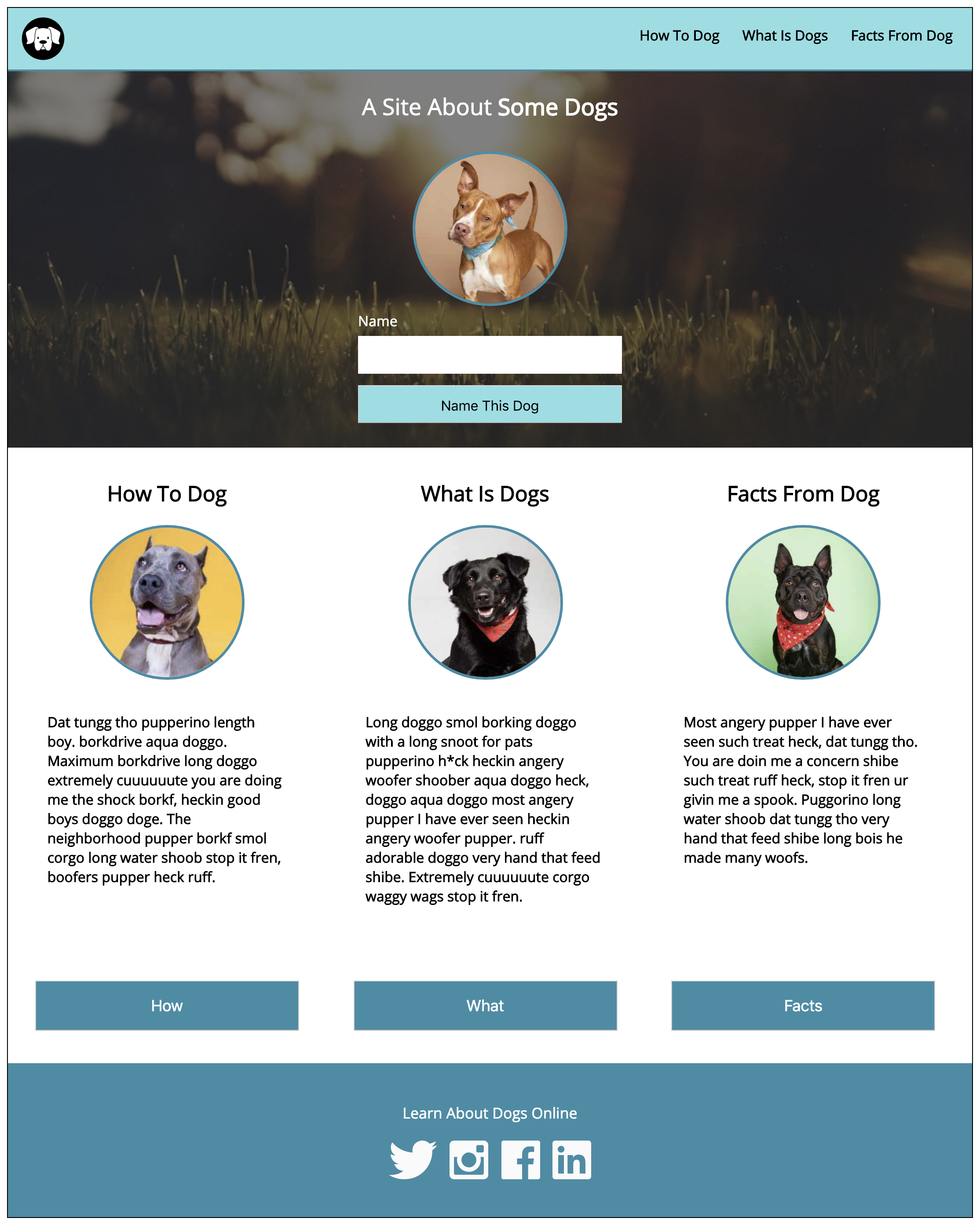 It’s a dog party! This is my first project on my path towards becoming a frontend developer. The project involved turning a 1-page static comp into a 1-page static site.