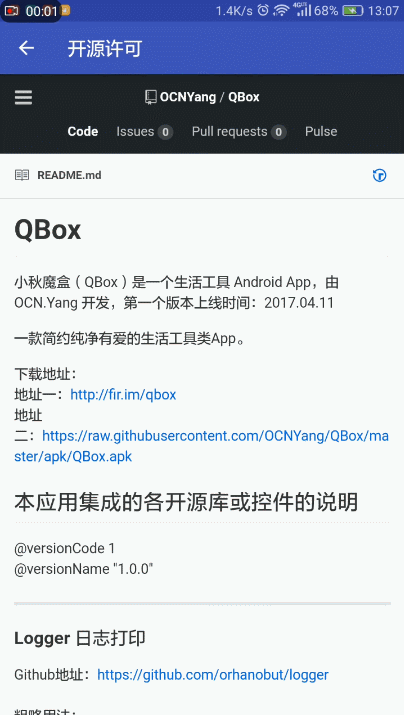 地址二:https://raw.githubusercontent.com/OCNYang/QBox/master/apk/QBox.apk
