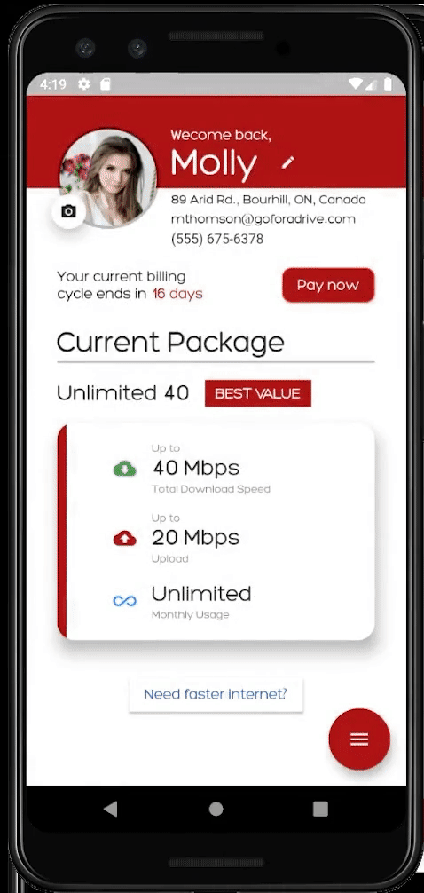 Edit your account info and pay your bills right from your account page, straight from the app.