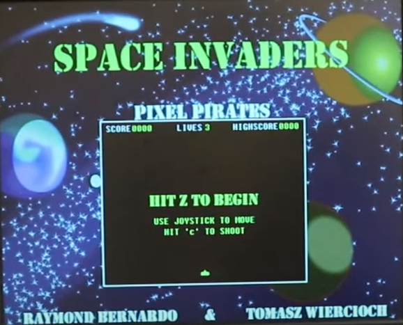 The game was controlled with a wii nunchuck that was modified to be wireless using an xbee. The shooter moves left/right by moving the joystick and to shoot the trigger button is pressed.