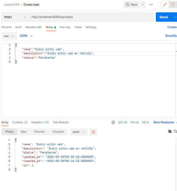 Una simple Rest API de tasks realizada con Mysql y Laravel.