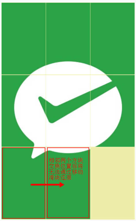 }- 错误示例(相邻两个滑块直接进行奇数数次交换位置,最后将会剩下两个滑块位置颠倒,且无法通过移动滑块位置还原)