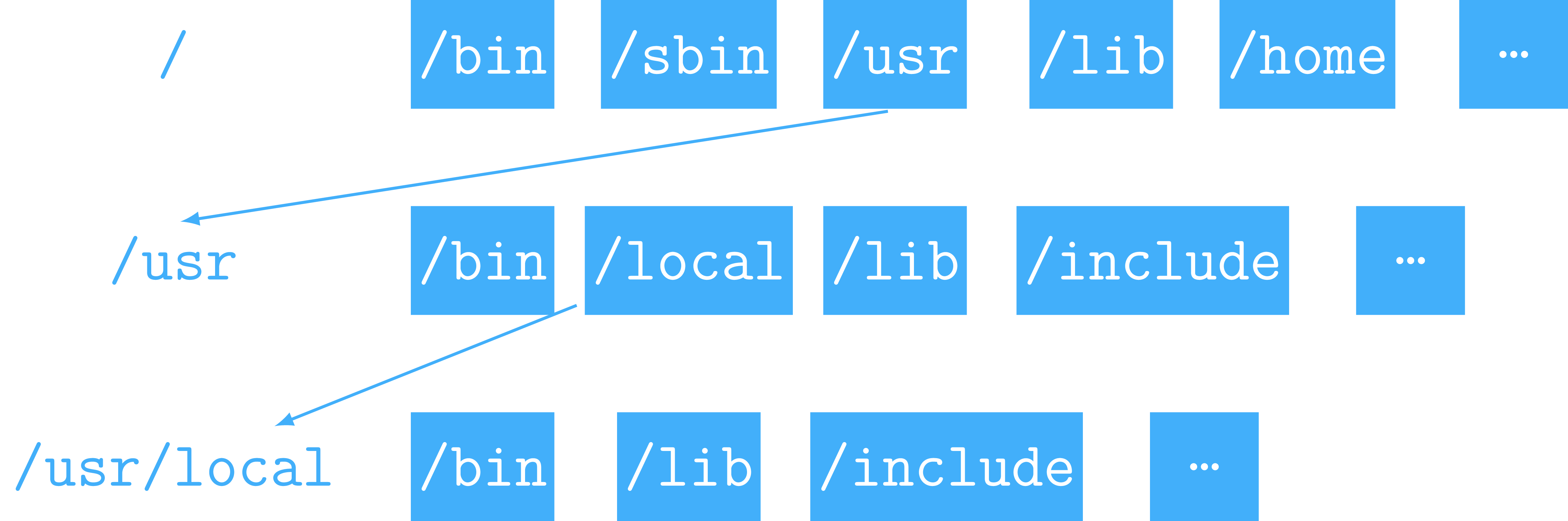 + - `/usr/local`: third level hierarchy level containing packages installed manually