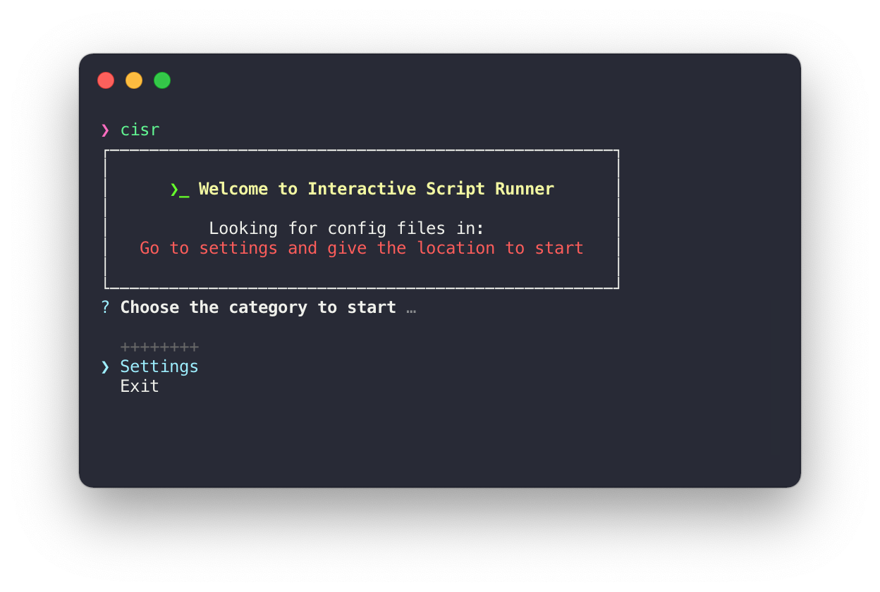 Running the cisr in the command line will start an interactive prompt. You can provide the location of your config files(JSON and js files).
