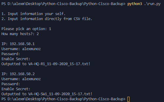 in your terminal or command prompt. Host list will be taken from files cisco_backup_hosts.csv