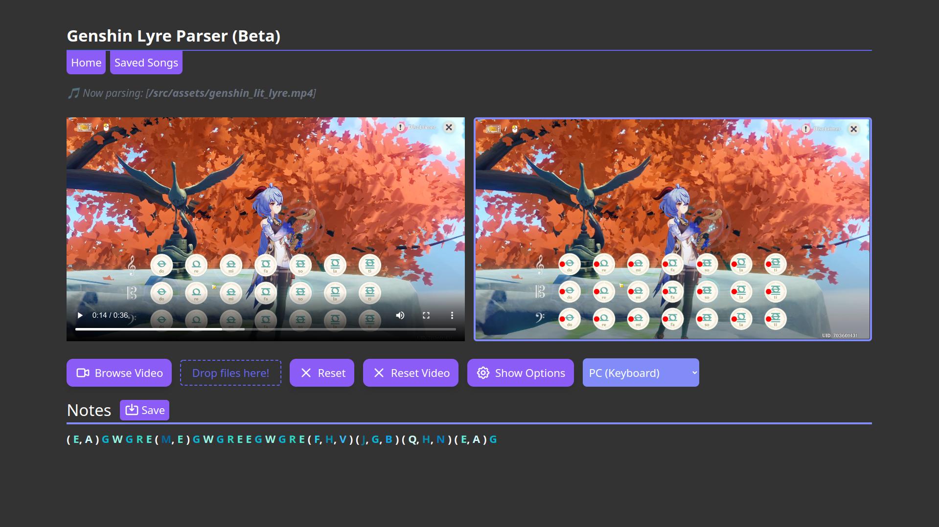 Genshin Lyre Parser is a webapp that can generate a playable note list from almost any Genshin Impact lyre video. You can simply pick a file, drag it in the parser, process it, and enjoy your note list.