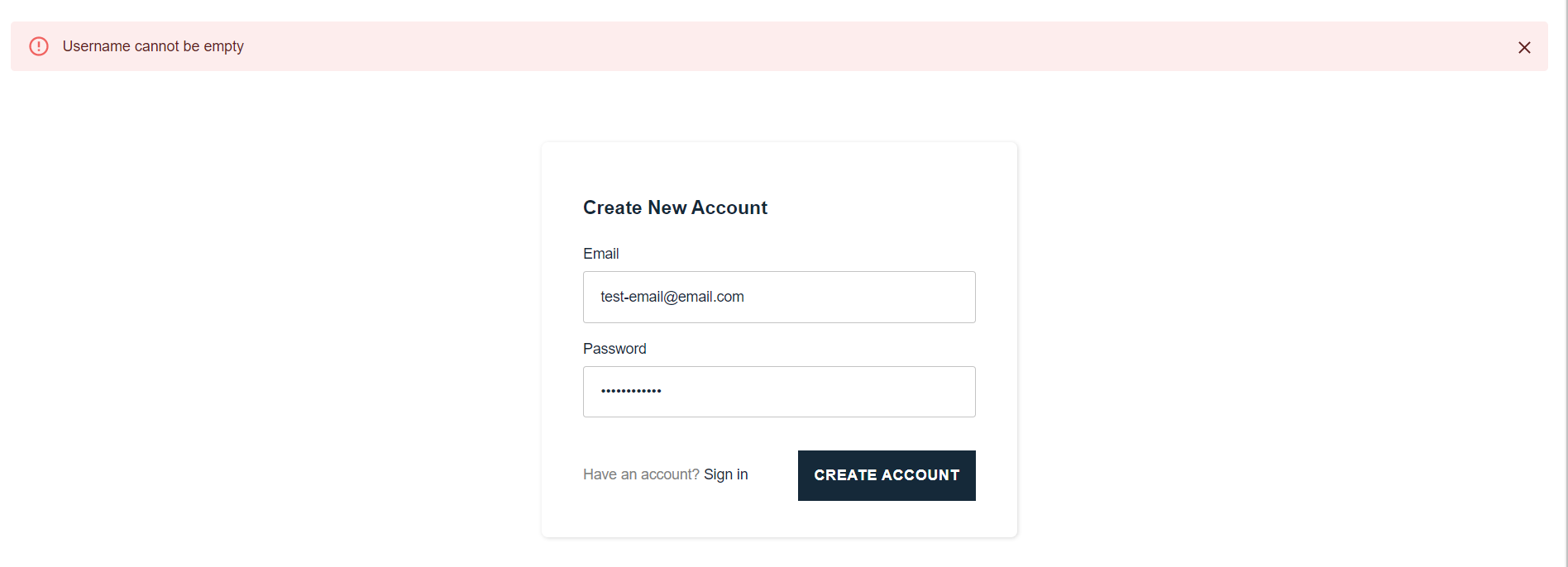 An error was displayed saying “Username cannot be empty” even if the password requirements are satisfied.