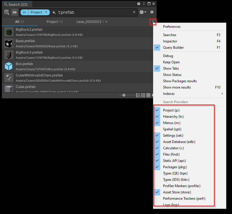 <, :,=,>...). That said, indexing ALL SerializedProperties of ALL assets in your project can be really long. I would suggest that for big project you disabled this option. I will give you more tips on how to do some limited search by properties later.