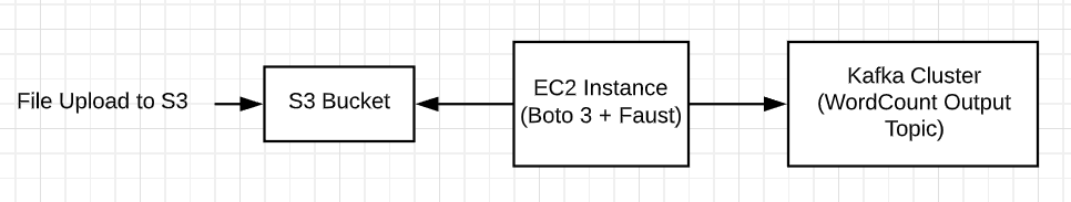 By default the maximum file size that can be sent to Kafka is 1 MB and in order to take care text files greater than 1 MB; we’ll leverage on another python library from Amazon, Boto 3 with capabilities of reading objects in S3 transparently and feed to Faust application agents to complete the word counting.