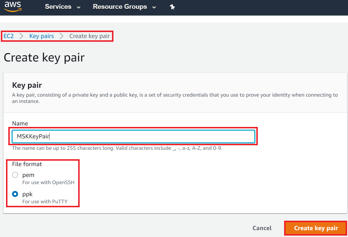 Now click on Create key pair and MSKkeyPair is downloaded automatically.