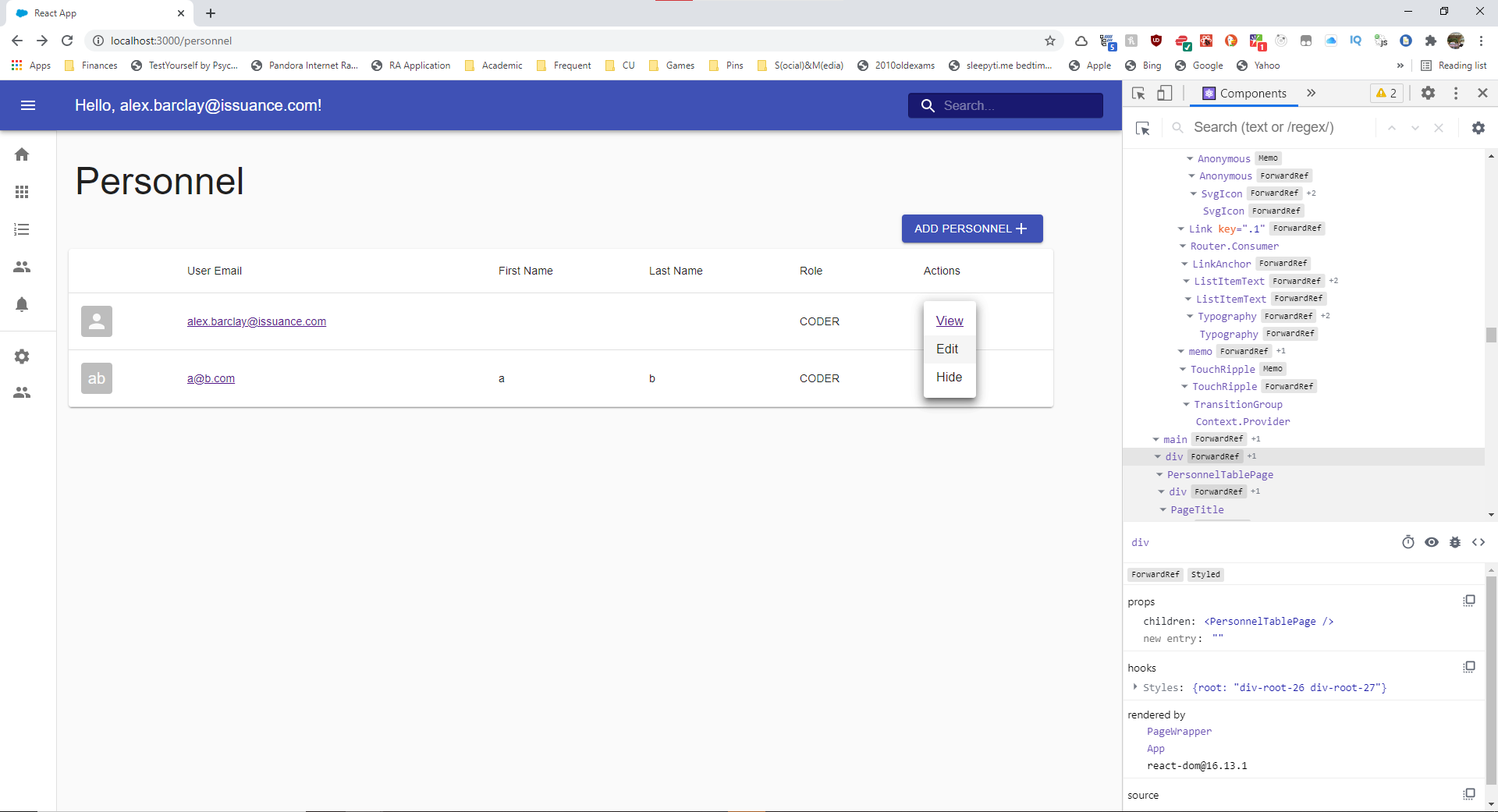 This may be due to the Person being passed into the action menu