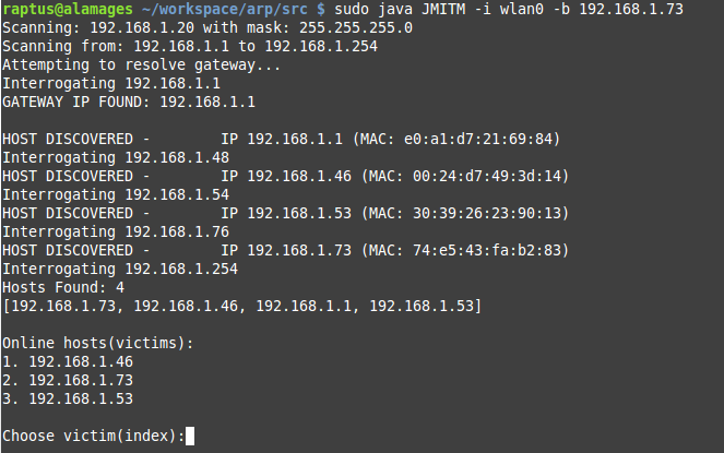 The network jamming is done by the JNetJammer class and the MITM(Man in the middle) is done by the JMITM class. REMEMBER in order to run these classes you need to be root, download the src/ and compile them