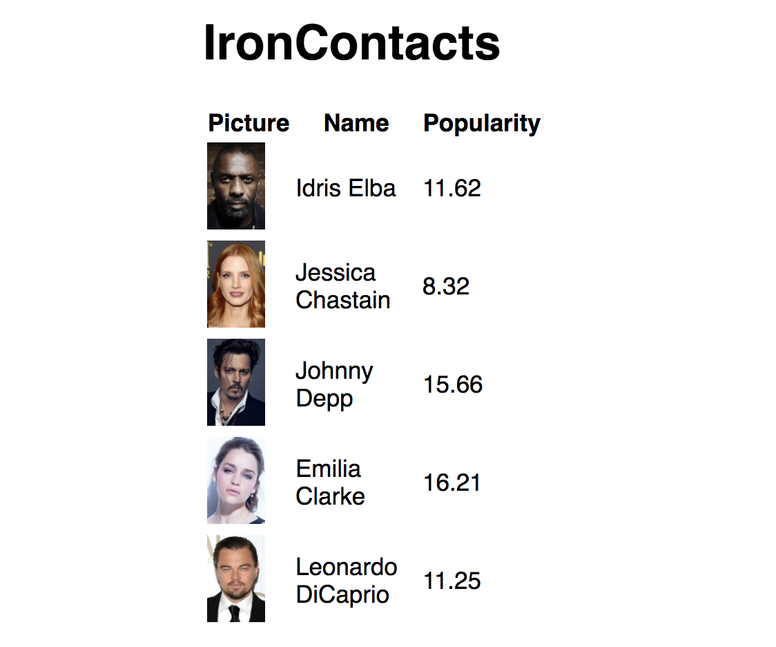 Unfortunately, this contact list isn't really production ready. This is the movie business! It's got to sparkle! Add some nice CSS to make the app "pop".