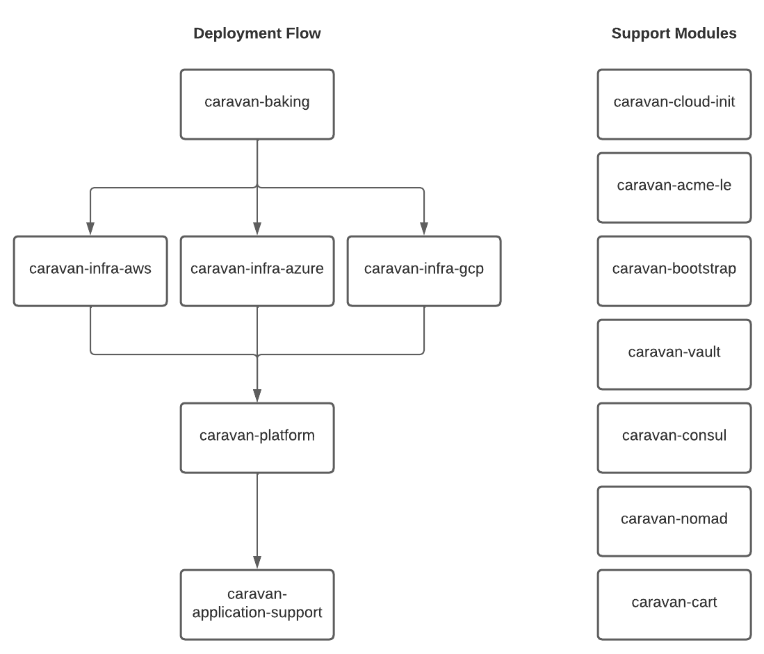 - caravan-infra-azure: terraform project for deploying infrastructure on Azure