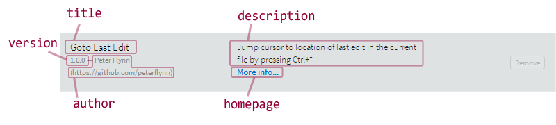 homepage(encouraged) - URL linking to more information (Extension Manager shows this as a "More Info" link) -