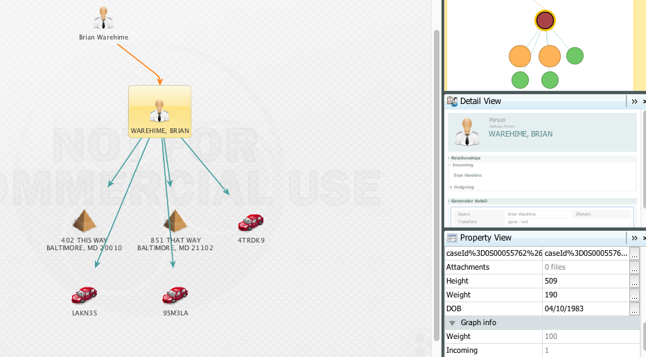 You'll notice on the right-hand side in the "Property View" section, we added additional properties to the person entity. We added the height, weight and DOB for each target, which will help validate if this is your target.