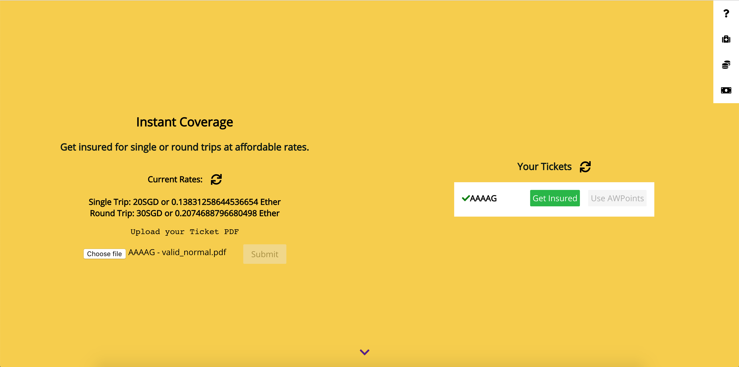 Refresh the page to see the updated loyalty points once the insurance has been added to the blockchain.