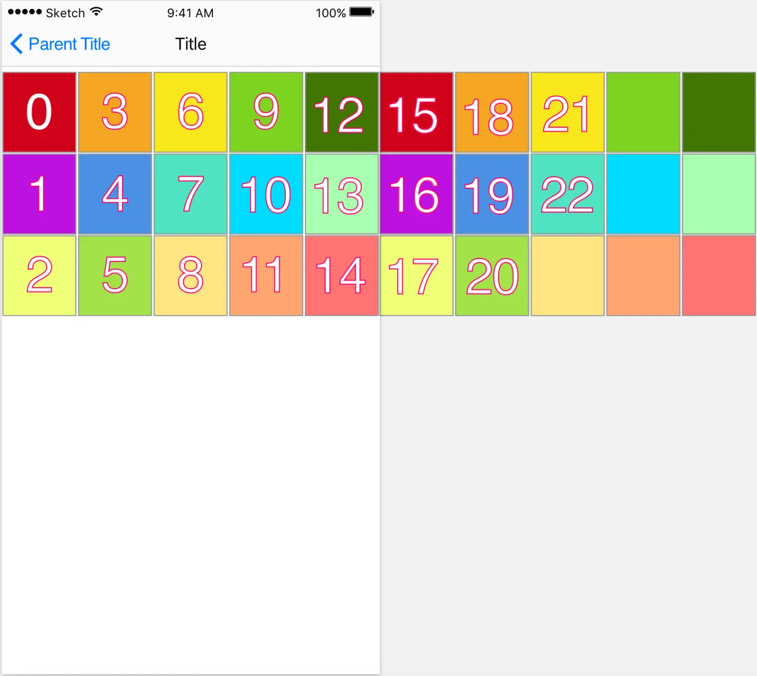 CoolSlidingMenu主要通过UICollectionView实现,在滑动菜单中,是从左至右排列的,所以我们想要的布局如下:(CoolSlidingMenu is implemented primarily through UICollectionView,in the slide menu, it is arranged from left to right, so the layout we want is as follows )