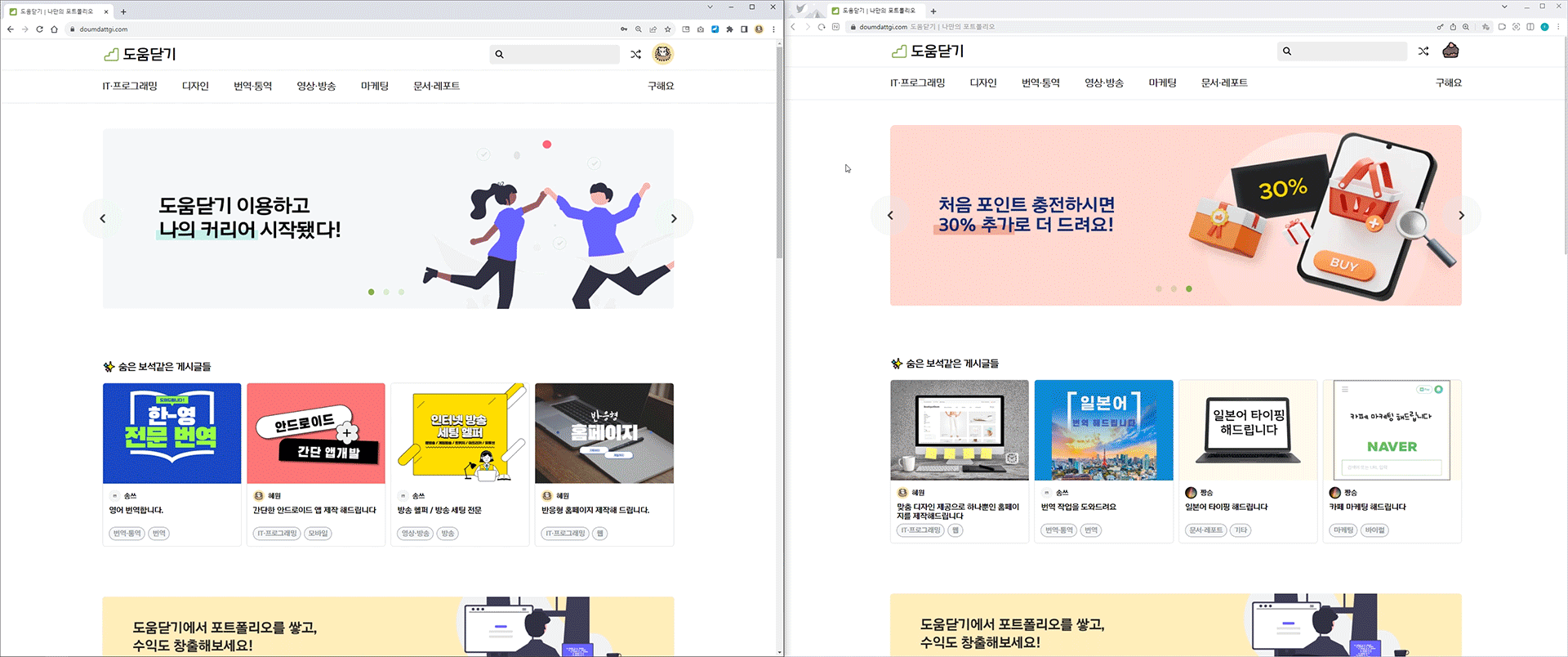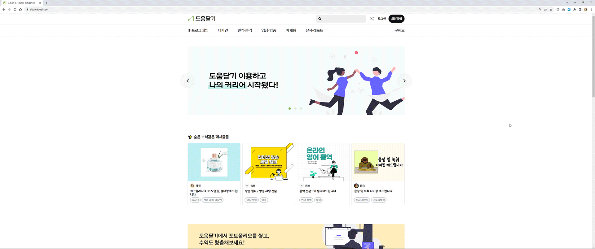 ๋์๋ซ๊ธฐ๋ ์ด๋ฐ ๊ฒฝํ์ด ์๊ฑฐ๋ ๋ถ์กฑํ ์ฌ๋๋ค์๊ฒ ์ค์ ๋ก ์ผํ ์ ์๋ ๊ธฐํ์ ๊ฐ์ธ์ ๋ฅ๋ ฅ์ ์ฆ๋ช ํด ๋ณผ ์ ์๋ ํ๊ฒฝ์ ์ ๊ณตํ๋ฉฐ ์ฌํ์ ์ฒซ ๋ฐ์ ๋ด๋๋ ์ด๋ค์ด ์ข ๋ ๋์ ๊ณณ์ผ๋ก ๋์ฝํ์ฌ ์๋ก์ด ์์์ ํ ์ ์๋๋ก ํ๋ ์ฑ์ฅ์ง์ ํ๋ซํผ์ ๋๋ค.