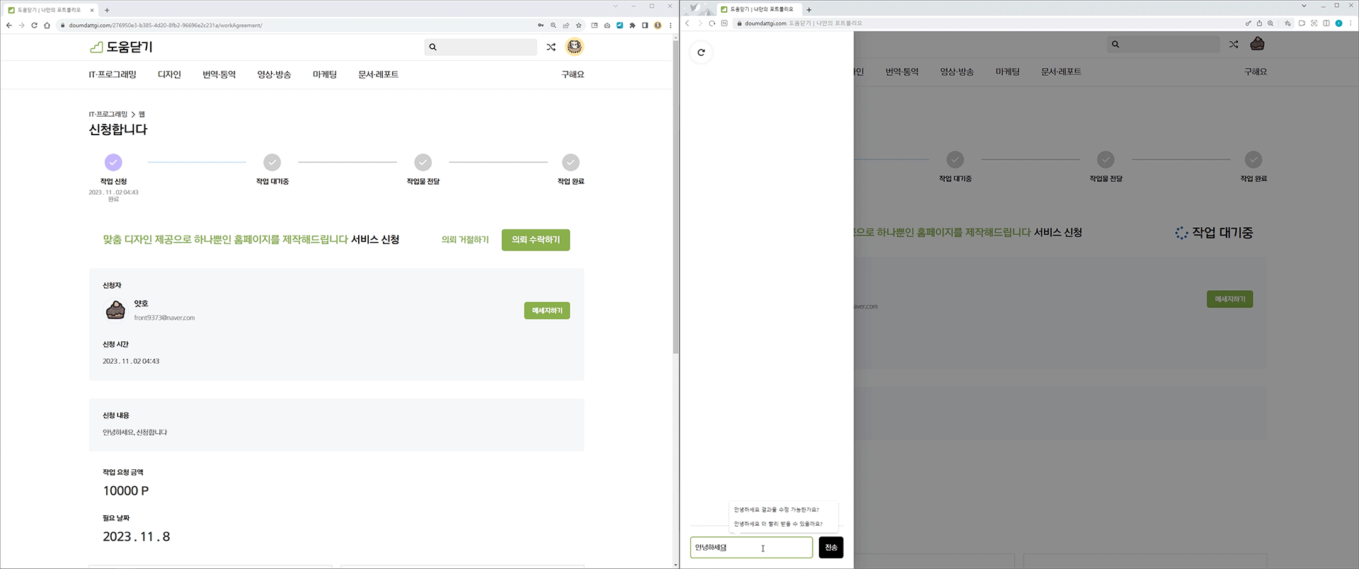 - ๊ตฌ๋งค์๊ฐ ์๋ขฐ ์์ฒญ์ ๋ณด๋ด๋ฉด ํ๋งค์๊ฐ ์์ฒญ์ ์๋ฝํ๊ฑฐ๋ ๊ฑฐ์ ๊ฐ๋ฅ