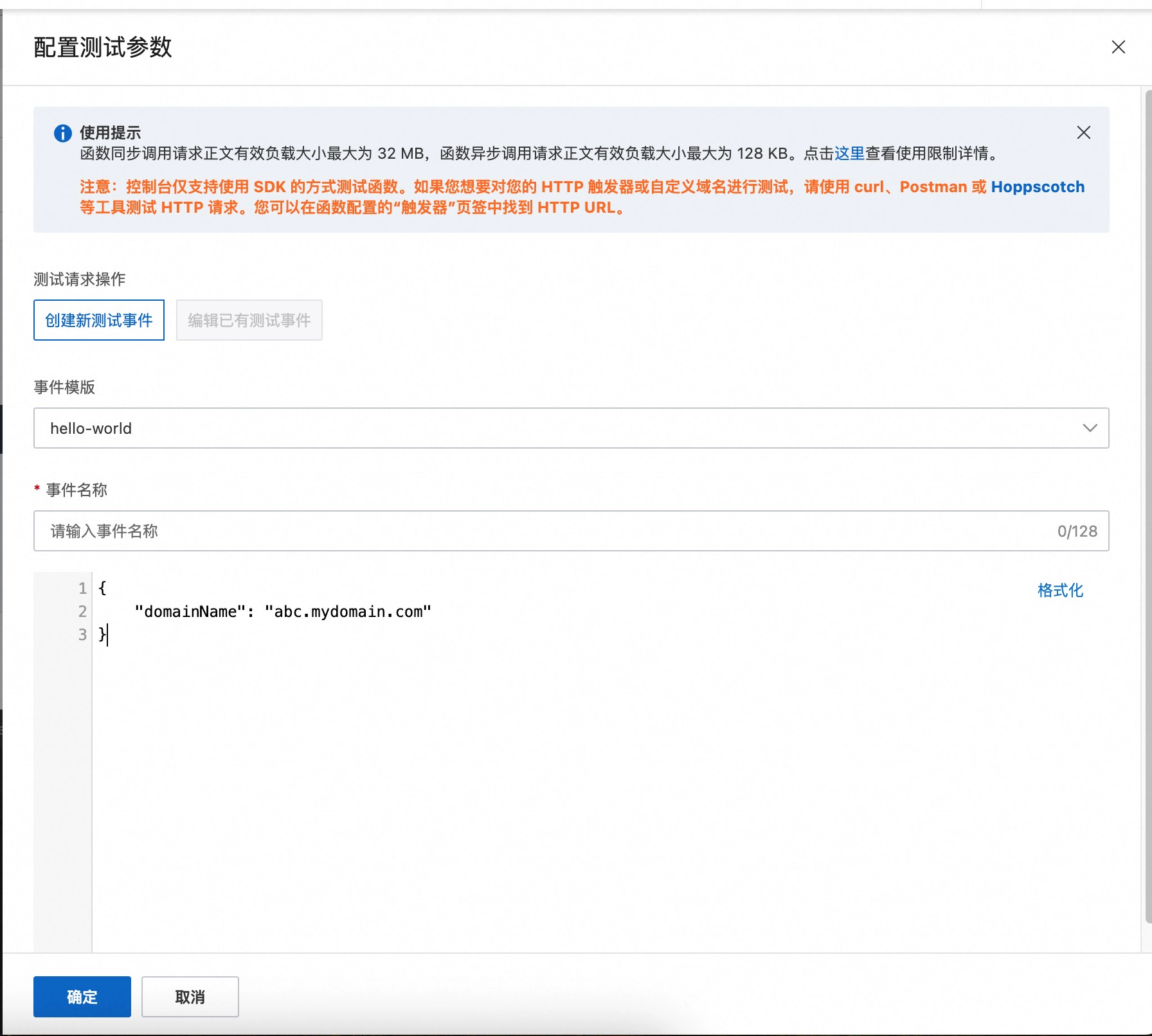 - 您可以在函数计算自定义域名创建或编辑页面中使用此证书。