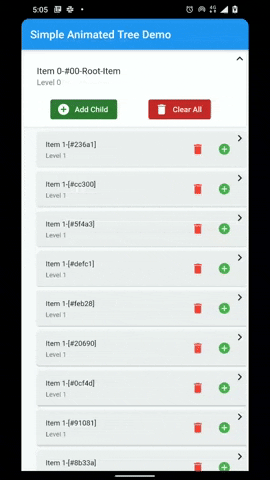The simple TreeView uses the AnimatedList to build the tree view. It can be used for simple tree implementations where a combination with other scrollables is not required.