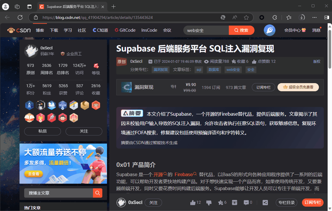 简述:以“Supabase 后端服务平台 SQL注入漏洞”为例,展示GobyAI智能生成SQL注入类型漏洞PoC/EXP的方式及实战验证效果。