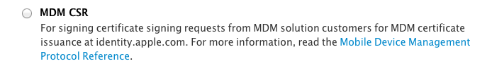 Note that they don't enable the MDM Vendor program by default. The registered Team Agent needs to email [email protected] and say something like "I am writing to request a MDM Vendor signing certificate for Acme, Inc. I am listed as the Team Agent for our Enterprise Developer Program account."