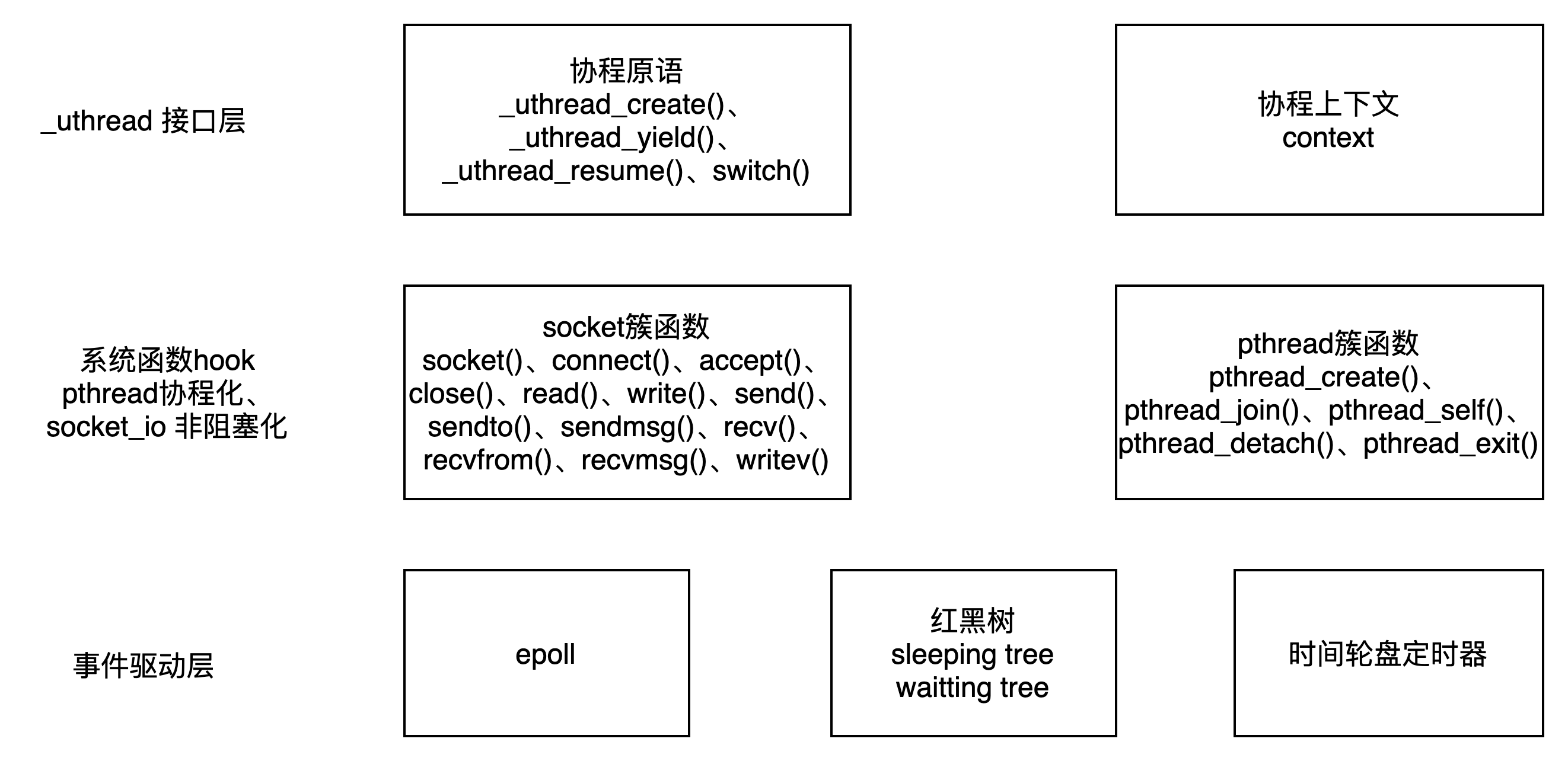 - 通过对pthread接口以及socket I/O库函数进行hook,保证用户无感知