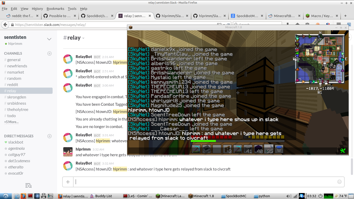 Requires: pyslack-real slackclient python-rtmbot and SpockBot