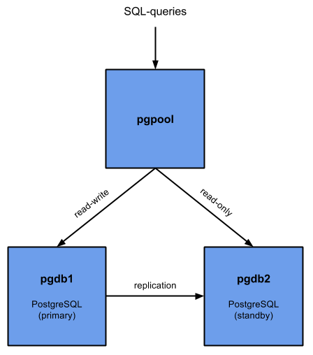 Once Postgres clustering has been configured, this cookbook will also create an additional server running pgpool-II. Pgpool is configured to act as both a proxy (it accepts postgres connections and routes them to the correct backend host) as well as a failover controller. Failover scripts have been implemented which allow pgpool to trigger a failover and recover a former primary as a standby node.