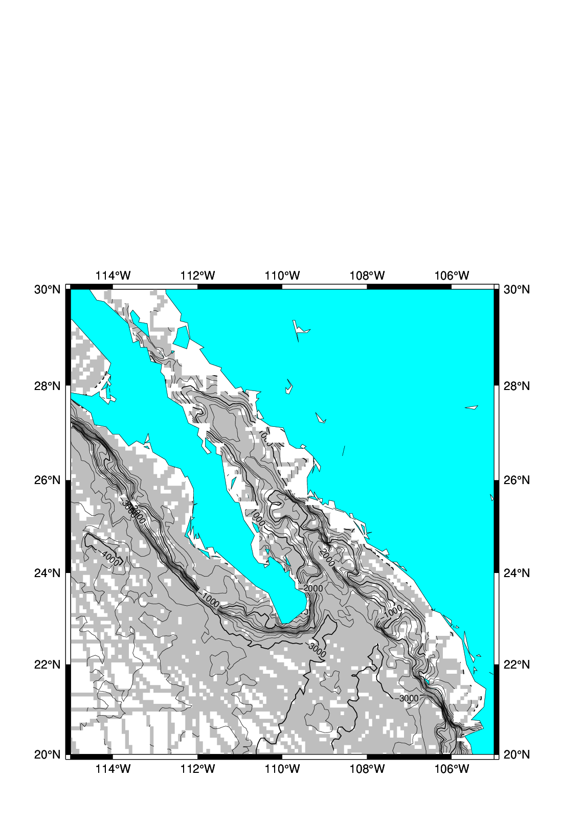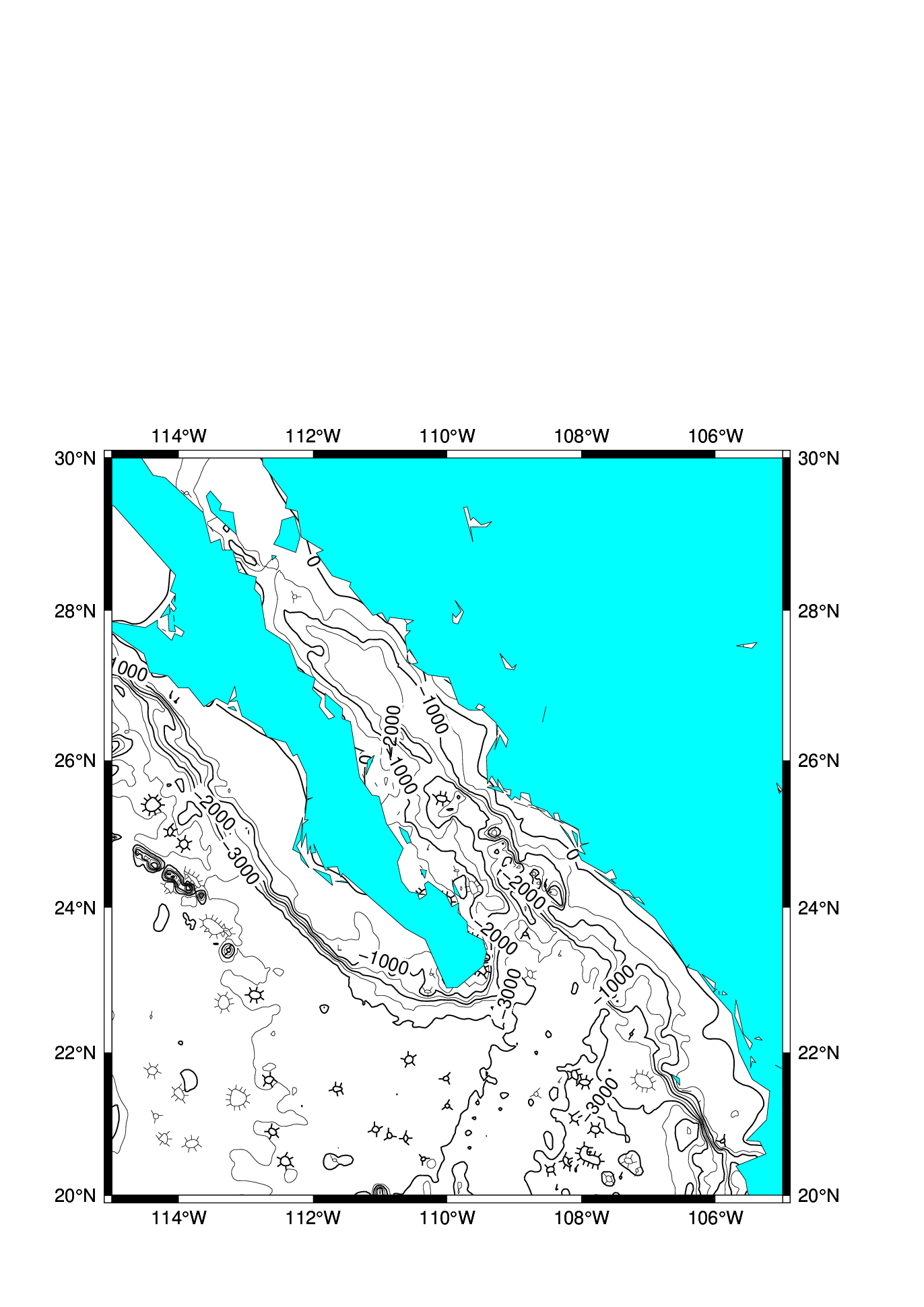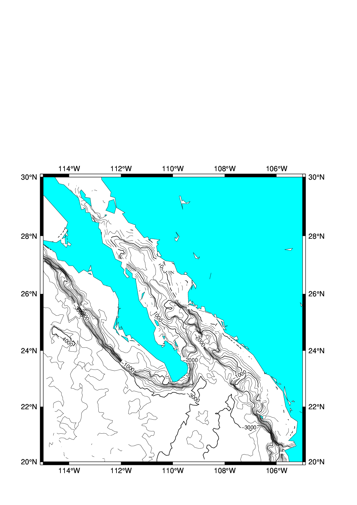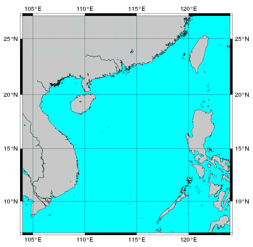 pscoast -R -J -B -Gcyan -Wthinnest -O >> W15_map.ps