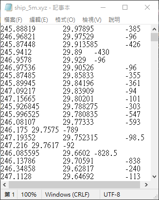 unknown [COMPATIBILITY]: Module minmax is deprecated; use gmtinfo. ship_5m.xyz: N = 5850 <245.00309/254.681025> <20.00149/29.97895> <-7392/- 19>