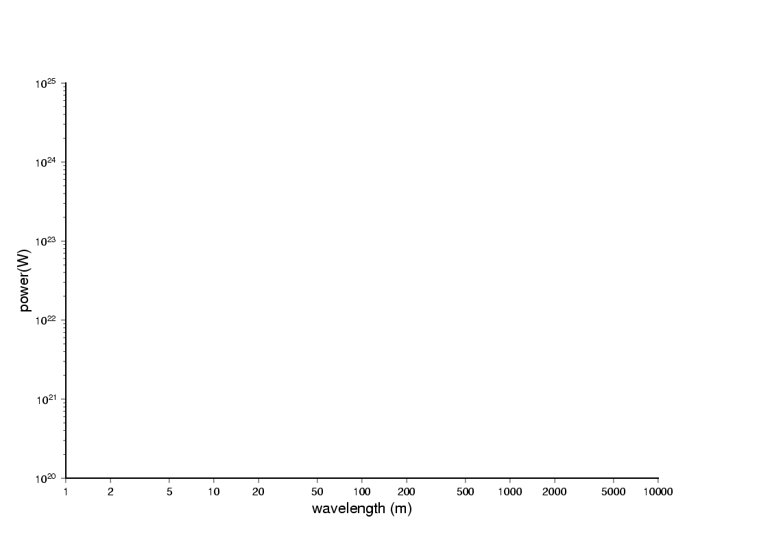 $ psbasemap -R1/10000/1e20/1e25 -JX9il/6il -B1:"Wavelength (m)":/a1pf3:"Power (W)":WS > plot.ps