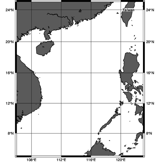 $ pscoast -J -R -Dh -Wthinnest -G155 -B -O >> W16_ship.ps