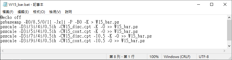 psscale -D3i/3i/4i/0.5ih -CW15_disc.cpt -K -O >> W15_bar.ps